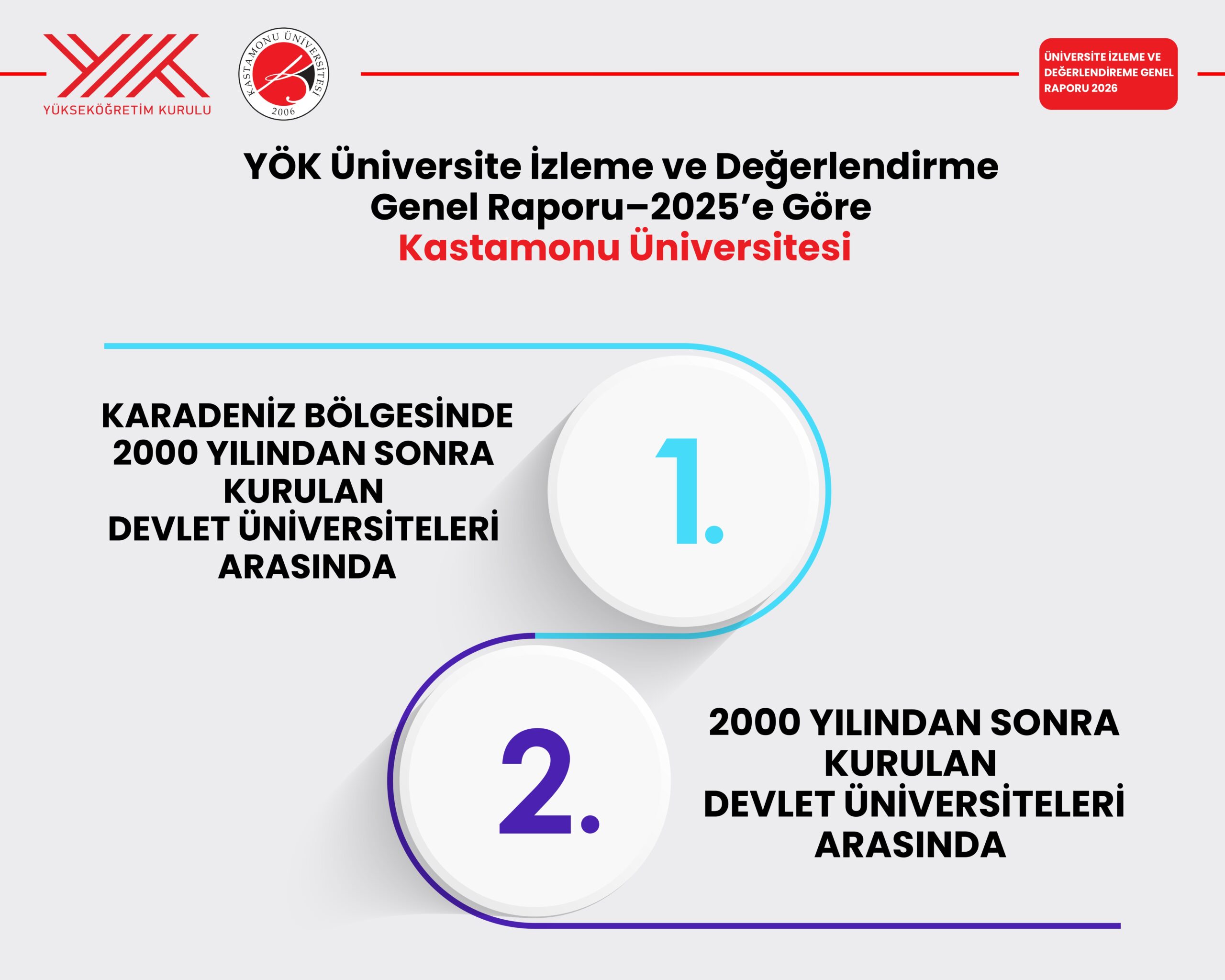 YÖK Üniversite İzleme ve Değerlendirme Genel Raporu–2025’e göre Kastamonu Üniversitesi, 2000 sonrası kurulan devlet üniversiteleri arasında Türkiye 2’ncisi, Karadeniz’de 1’inci oldu.