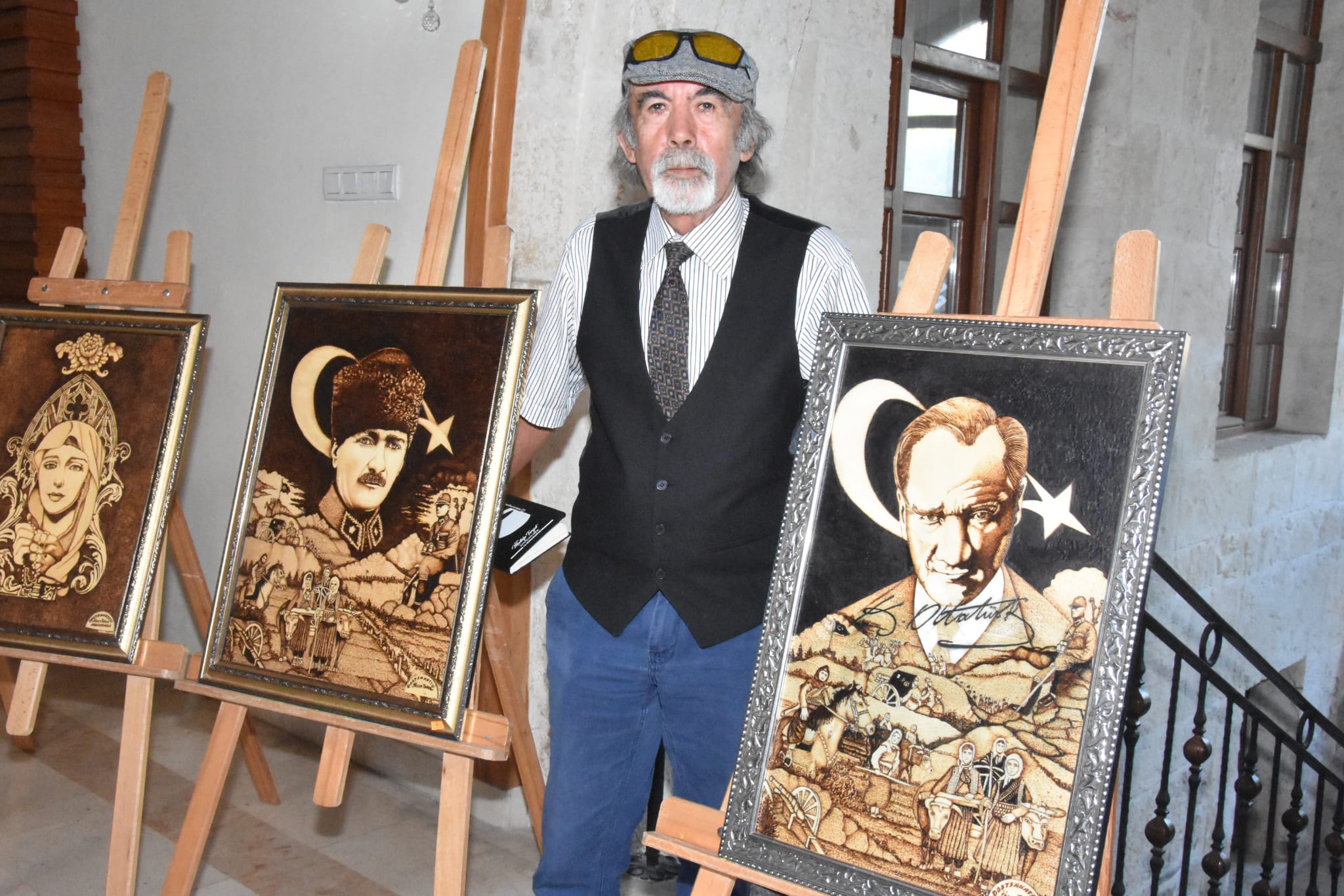 Ahşap üzerine yakarak resim yapan Kastamonulu ünlü sanatçı İhsan Tabak’ın Silifke’de açtığı Cumhuriyet temalı sergi büyük ilgi gördü.