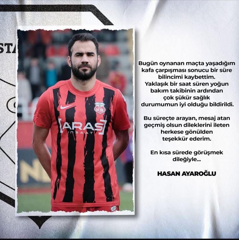 Kulüp basın birimi, Hasan Ayaroğlu’na acil şifalar dileyerek süreçle ilgili gelişmelerin kamuoyuyla paylaşılacağını bildirdi. Kent genelinde ise futbol camiası ve sporseverler, başarılı oyuncunun bir an önce sağlığına kavuşması için destek mesajları paylaşıyor.
